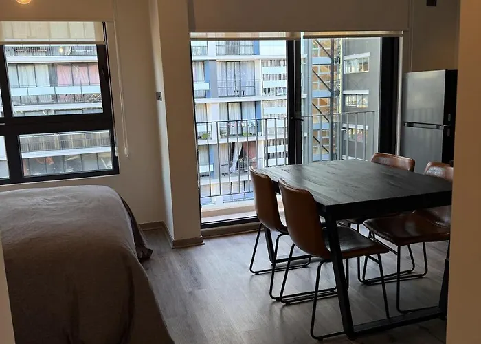Valparaiso Coast Suites - Moderno Apartment With Parking is located 1 km from the Gothic-style Roman St. James Catholic Cathedral and just a 14-minute walk from the Baron Pier. Featuring a terrace with views of the city, this apartment is a few steps from the Plaza O'Higgins.